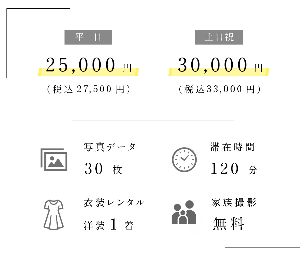マタニティ撮影は、1家族1撮影で写真データは55枚を限度とさせていただきます。